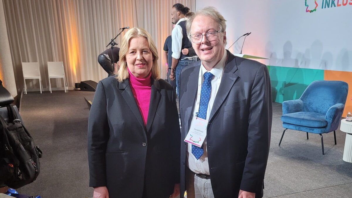 Zu dem Empfang, der im Cafe Moskau in Berlin stattfand, waren rund 500 Teilnehmende aus Behinderten- und Sozialverbänden sowie der Politik gekommen, unter anderem hochkarätige Gäste wie Bundespräsident Frank-Walter Steinmeier oder die Bundesministerin für Arbeit und Soziales Bärbel Bas. Dr. Freter konnte am Rande der Veranstaltung mit der Ministerin unter anderem über die Themen "Dolmetscherkosten" und "Sozialstaatskommission" sprechen und zeigte sich zufrieden mit der Gelegenheit des Austauschs. “Ich habe ihr deutlich gemacht, dass Berufsbetreuer*innen Dolmetscherleistungen für ihre Kommunikation mit den Klient*innen aus den Betreuungspauschalen finanzieren müssen”, sagte er. Zudem konnte er der Ministerin verdeutlichen, dass es sinnvoll wäre, die Expertise von betroffenen Menschen in die Sozialstaatskommission einzubeziehen und auch derjenigen, die wie Betreuer*innen die Interessen von Menschen vertreten.
